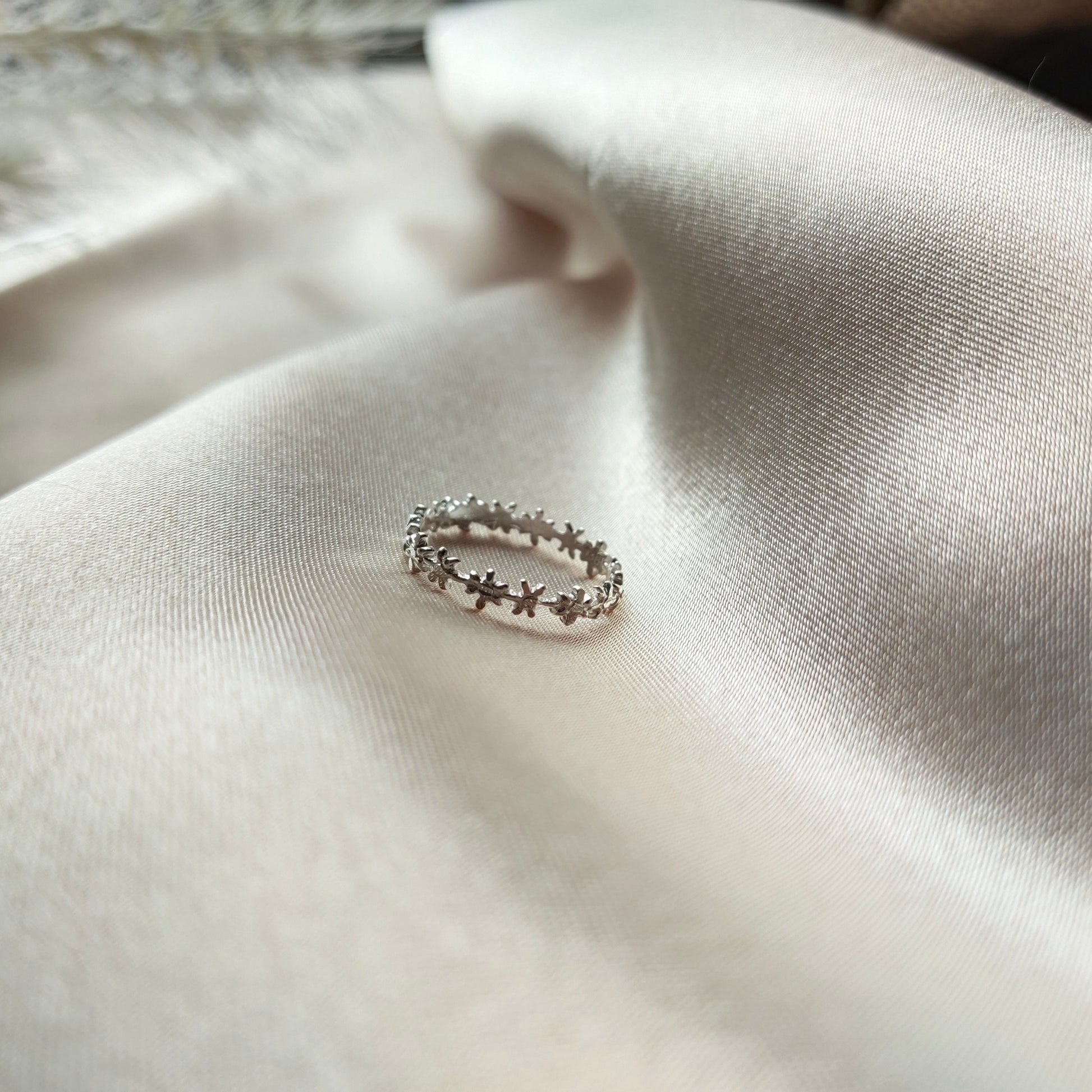 Beautiful 925 sterling silver ring encircled with blooming Melur flowers to enhance your minimalist style. Gift yourself or the one you love with this sweet minimal ring that is durable and long lasting.